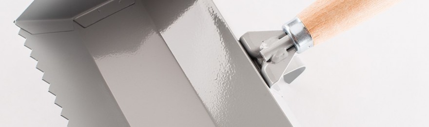 | Trwałe łączenia trzonka z blatem gwarantuje żywotność narzędzia | Wybór rajberki powinien być uwarunkowany jej przeznaczeniem, gdzie gładkie stosuje się do mas gipsowych, a zębate do mas klejowych | Blat szpachelki dzięki sprężystym właściwościom sprzyja wydajnej pracy |
