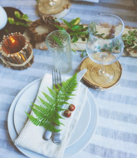 Święta Bożego Narodzenia mają w sobie odrobinę bajkowości i magii. Korelacja z lasem i takie nawiązania w dekoracjach są tu jak najbardziej mile widziane. Zadbajmy zatem o stół w klimacie leśnej aury. Przedświąteczny spacer poprawi naszą kondycję, a jednocześnie pozwoli zebrać ozdoby, którymi inspiruje przyroda. Naturalne dary lasu, takie jak zielone liście, gałązki, owoce krzewów, żołędzie, orzechy, kasztany, szyszki o różnych kształtach to bogactwo, o jakie aż prosi się wystrój naszego świątecznego stołu. Oddając ducha bliskości oraz więzi z naturą, nie zapominajmy o pięknych obrusach i serwetach. Te lniane w naturalnym kolorze, białe lub écru będą dobrze eksponowały wyjątkowe dekoracje.