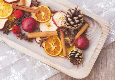 Nic tak nie buduje klimatu świąt Bożego Narodzenia, jak zapach. Wypełniające domy aromaty piernikowych przypraw, nieodmiennie nastrajają nas pozytywną, pełną ciepła atmosferą. Przygotowując zatem świąteczny wystrój naszych mieszkań, wykorzystajmy ten prosty i niekosztowny zabieg – napełnijmy dekoracyjne słoje, misy, tace naturalnymi suszonymi (najlepiej samodzielnie) owocami, plastrami jabłek i pomarańczy oraz pełnymi zapachów przyprawami jak kora cynamonu, laski wanilii, gwiazdki anyżu, goździki. Niech te zwyczajne, apetyczne dekoracje pojawią się również w pomysłach na prezenty lub ich opakowania. Tak wiele, niewielkim sumptem, możemy bowiem dać od siebie.