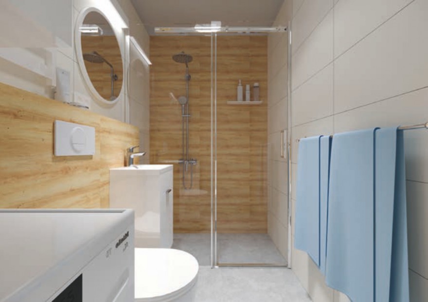 • Przeniesienie grzejnika w łazience na miejsce obok poprawiło warunki aranżacyjne.