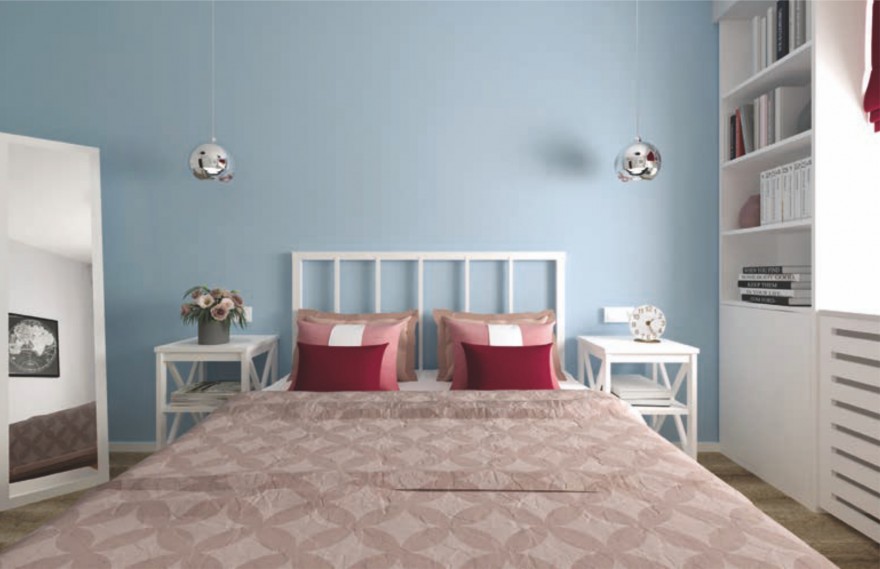 Patrząc na wizualizację mieszkania, trudno oprzeć się wrażeniu, że mamy do czynienia z pięknym nowym apartamentem. Aranżacja jest spójna i wyważona, przestrzeń jasna i obszerna. Stało się tak również dzięki fachowej wiedzy projektantki. Pozostałości po wyburzaniu ścian – szachty instalacyjne, podciągi i wnęki – zostały umiejętnie wkomponowane w zabudowę. Przykładem może być „słup” kryjący przewody instalacyjne, który znalazł się w centralnym miejscu strefy dziennej. Od strony pokoju stał się on doskonałym punktem oparcia dla strefy telewizyjnej, a od strony wejścia do sypialni do umieszczenia regału z książkami. W sypialni pod oknem półki wynikające z konstrukcji budynku umiejętnie połączono z zabudową grzejnika. Kuchenna wyspa to nie tylko dodatkowy blat, ale też wytrawna dekoracja wnętrza!