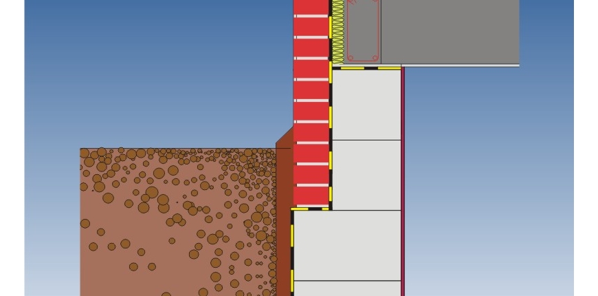 w ścianach zewnętrznych przyziemia (wys. 0,5 m), wykonujemy izolację poziomą np. z folii (unikniemy w ten sposób zawilgocenia murów od odbitej wody opadowej). Zewnętrzną ścianę nośną piwnicy osłaniamy twardymi płytami z polistyrenu XPS (ekstrudowanego) lub styropianu EPS 100, które muszą sięgać powyżej poziomu gruntu.