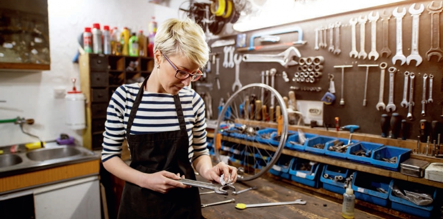 Gdy mieszkamy w domu jednorodzinnym, warsztat możemy zaaranżować na przykład w garażu, piwnicy, a nawet w dodatkowym pokoju. Przestrzeń roboczą dobrze jest tak zorganizować, aby w pomieszczeniu znalazło się miejsce na dodatkowe przedmioty związane z użytkowaniem domu. Powinniśmy więc znaleźć miejsce nie tylko na podstawowe narzędzia i blat roboczy, ale również na sprzęty ogrodowe, kosiarkę, sprzęt sportowy czy drewno do kominka. Jeśli na warsztat przeznaczamy garaż, pamiętajmy, że musi on spełniać swoją podstawową funkcję – parkowanie samochodu. Wyznaczmy więc bezpieczną strefę dla auta, uwzględniając jego wymiary i szerokość z komfortowym dla pasażerów otwarciem drzwi. W domowym warsztacie połączonym z pomieszczeniem gospodarczym sprawdzą się regały. Wybierzmy meble magazynowe wykonane z metalu lub drewna – uniosą duże ciężary i nie zniszczą się podczas intensywnego użytkowania. Nie są drogie, a pozwalają zachować porządek i maksymalnie wykorzystać przestrzeń, na przykład nad drzwiami, na ścianach bocznych czy we wnękach. Na przechowywanie sprzętu wykorzystajmy również miejsce nad i pod stołem roboczym. W tym celu zawieśmy półki lub specjalną ściankę na narzędzia, a pod spodem umieśćmy duże, plastikowe lub drewniane pojemniki na większe sprzęty. Funkcjonalne są również listwy, na których możemy powiesić na przykład narzędzia ogrodowe. Pamiętajmy, że każdy przedmiot powinien mieć swoje stałe miejsce. Mimo dużego warsztatu, warto zaopatrzyć się w poręczną skrzynkę narzędziową, którą zabierzemy ze sobą na przykład na piętro domu. Jeśli mamy dużo narzędzi i znamy się na różnego rodzaju naprawach, przygotujmy tematyczne walizki, na przykład podstawową, hydrauliczną czy elektryczną.